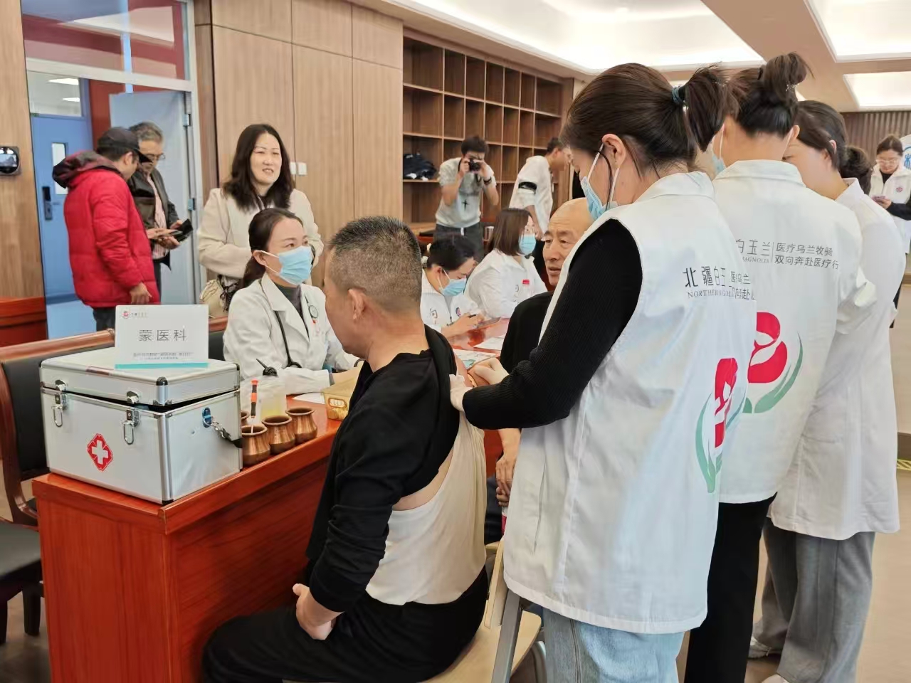 义诊现场,服务内容十分丰富。除了专业的健康咨询,还提供了包括血压、血糖监测、心电图检查等基础医疗服务。同时,极具特色的蒙医艾灸疗法和中医理疗体验也吸引了众多老同志参与。专家们通过望闻问切、细致查体,结合老同志们携带的既往病历、体检报告和影像资料,为他们分析病情、解答疑惑,并提供了个性化的治疗建议和养生指导。