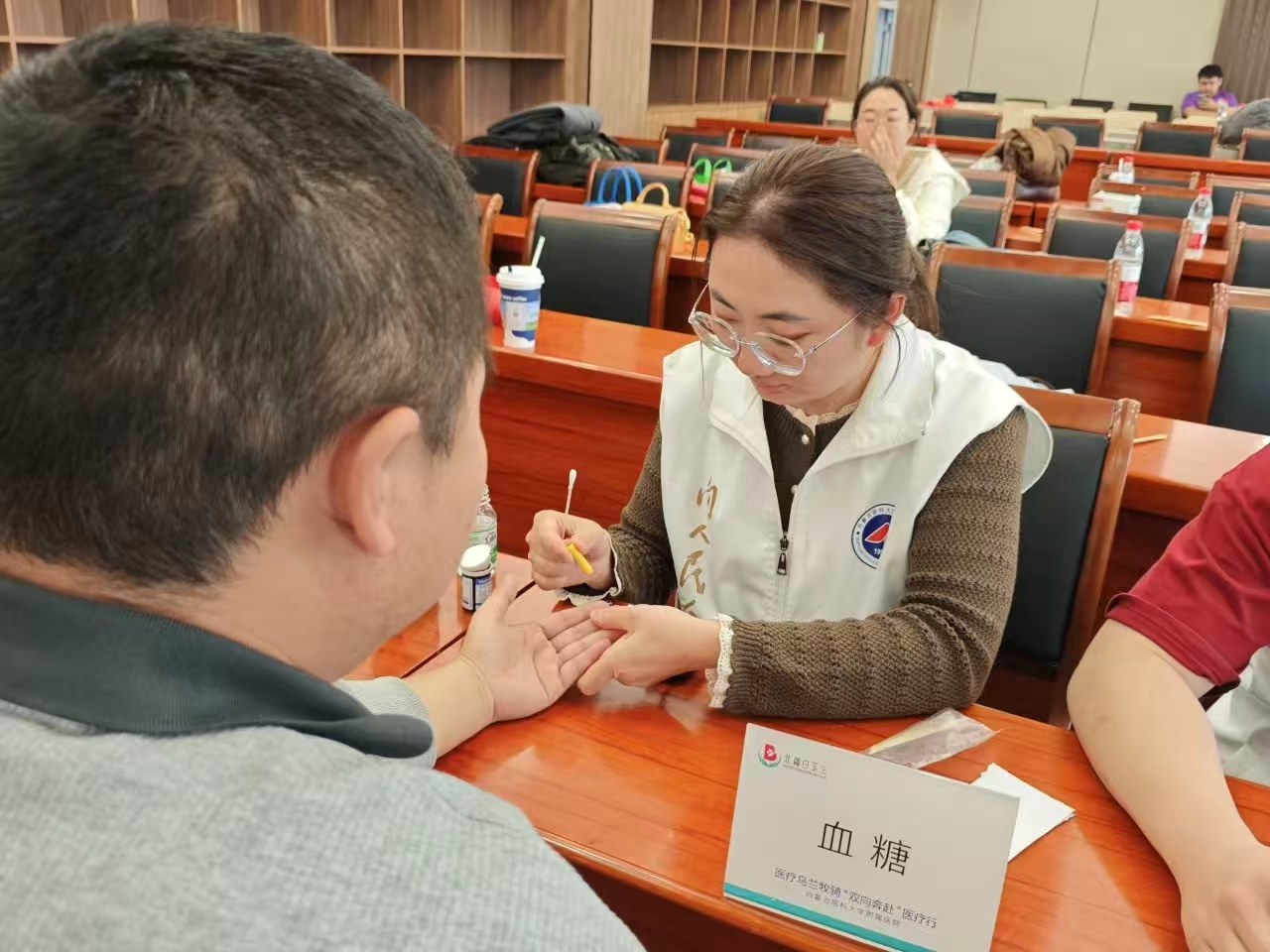 讲座结束后,备受期待的义诊活动随即展开。本次义诊专家阵容强大,涵盖了全科、呼吸与危重症、心血管内科、蒙医、中医、乳腺外科、临床营养等多个领域。知名专家、教授齐聚一堂,耐心细致地为前来咨询的离退休教职工进行面对面诊疗和健康指导。