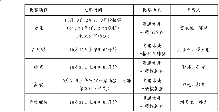 2、比赛时间:10月30日—10月31日,地点:离退休人员工作处